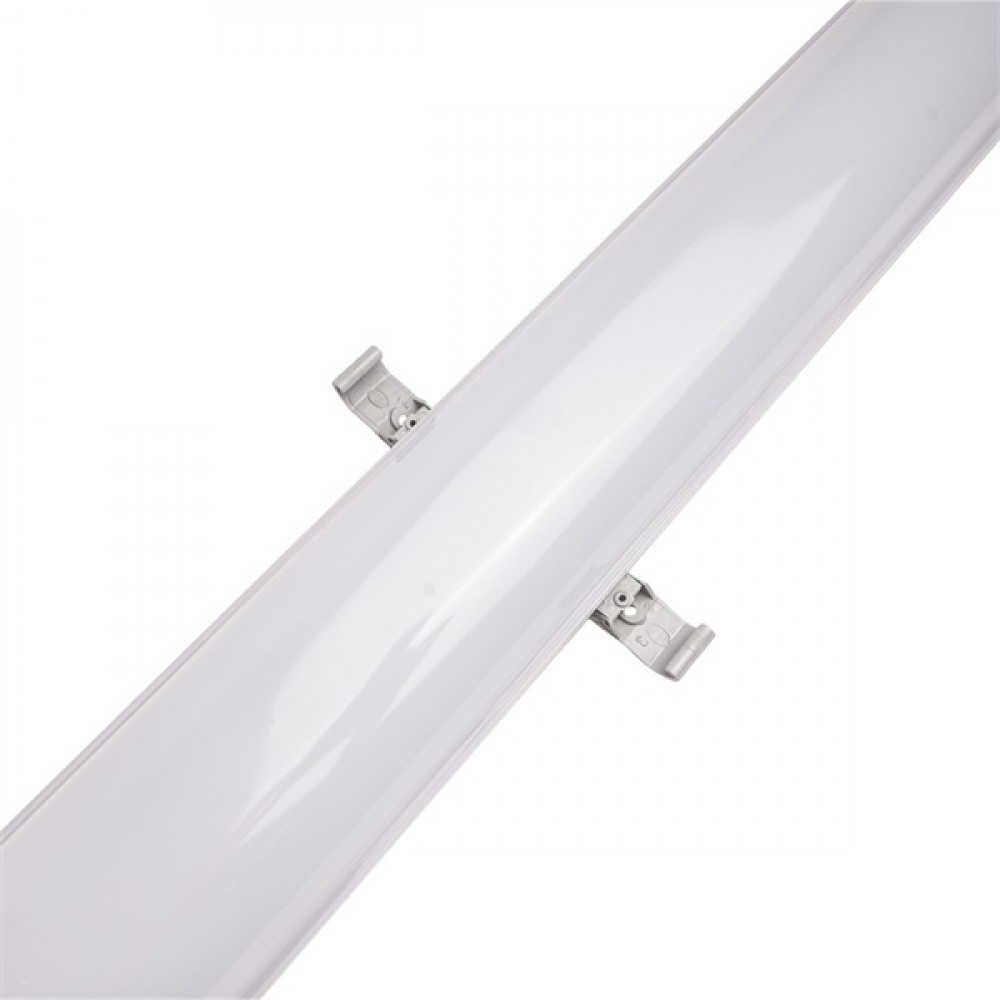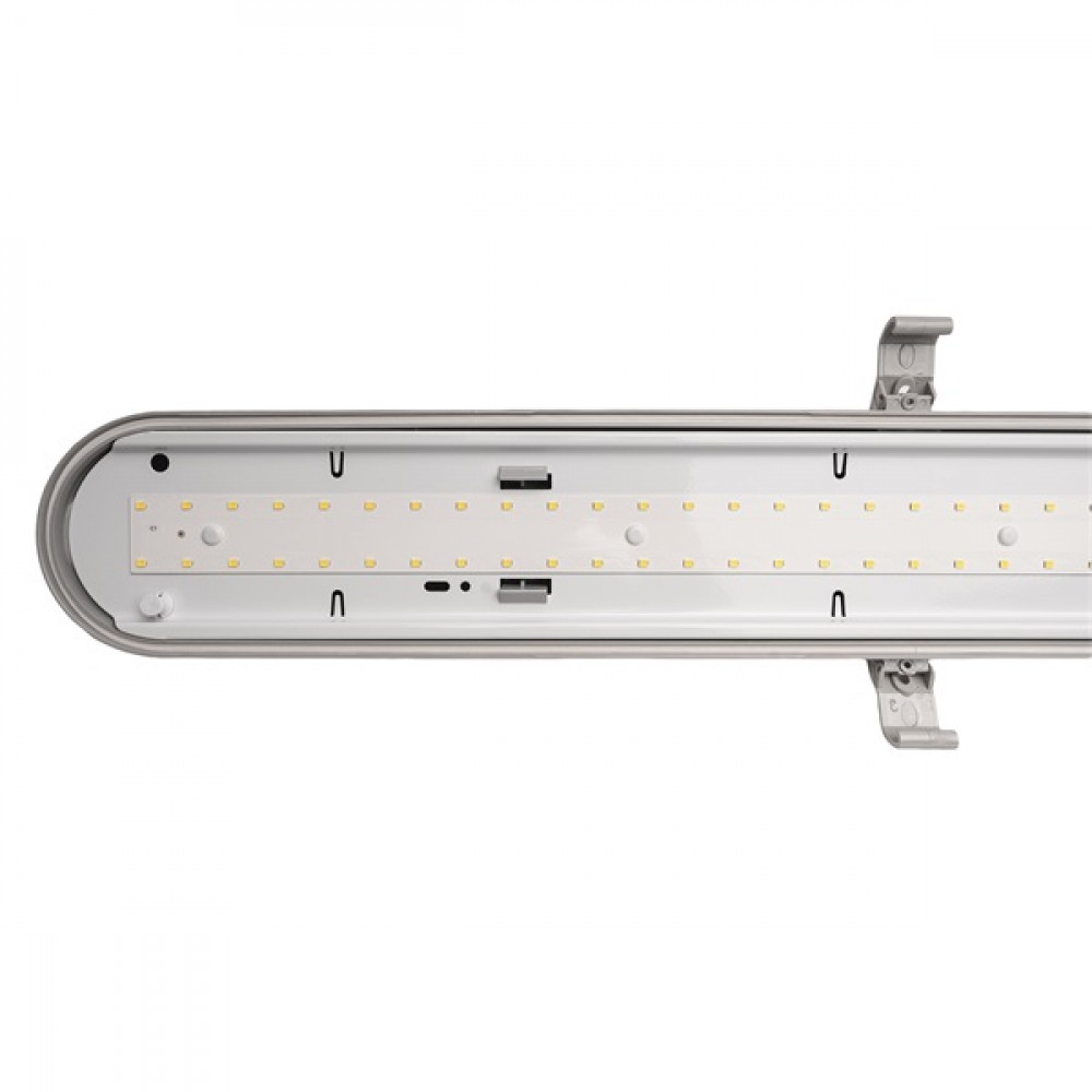 120cm integrált ledes por-és páramentes lámpatest, IP65 védettségű, vibrálás mentes driverrel, 40W, 4000 lumen, semleges fehér színhőmérséklettel - 4000K. A ház RAL7035 világosszürke polikarbonát, a búra UV-stabilizált opál színű polikarbonát.